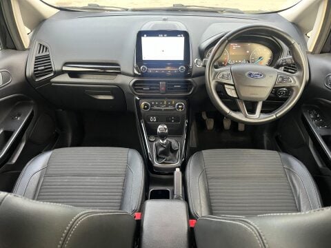 ULEZ COMPLIANT! This 2018 Ford EcoSport T Titanium presents a compelling proposition with its full service history and a clear vehicle history check, offering peace of mind for its next owner. Finished in a striking Shadow Black with a contrasting roof and mirrors, this Euro 6 compliant 1.0L petrol model has covered a modest 38,000 miles, making it low mileage for its age. Keyless entry and start add a touch of modern convenience, while the Electronic Automatic Temperature Control ensures a comfortable cabin environment. Manoeuvring is made easier with a rear view camera and rear parking sensors, complemented by automatic headlights for enhanced visibility. The EcoSport Titanium stands out with its impressive fuel economy, achieving up to 53 miles per gallon, which indicates it is more economical than many similar vehicles. Furthermore, its low CO2 emissions contribute to a more environmentally conscious driving experience. This combination of efficient performance, practical features, and excellent provenance makes this Ford EcoSport a sensible choice for everyday driving. PART EXCHANGES WELCOME! FULL SERVICE HISTORY! ONE FORMER OWNER FROM NEW! HPI CLEAR!- Body TypeSUV