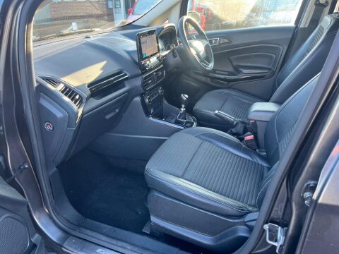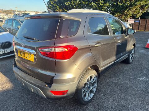 This 2019 Ford EcoSport T Titanium boasts a full service history and a clear vehicle history check, offering you complete peace of mind. This stylish SUV is powered by an efficient 1.0L petrol engine and meets Euro 6 emissions standards. Keyless entry and start allow for effortless access and ignition, while the rear privacy glass adds a touch of sophistication. Inside, you'll find electronic automatic temperature control for a comfortable cabin environment, and automatic headlights that adjust to lighting conditions. Manoeuvring is made simpler with a rear view camera and rear parking sensors. The Ford EcoSport T Titanium is designed for practicality and economy. It achieves an impressive fuel economy of 48 miles per gallon, which, combined with its low CO2 emissions, indicates it is a more economical choice compared to many similar vehicles. This makes it an appealing option for those seeking to manage running costs while enjoying the versatility of an SUV. ULEZ COMPLIANT! HPI CLEAR! FULL SERVICE HISTORY! ONE FORMER OWNER FROM NEW! PART EXCHANGES WELCOME!- Body TypeSUV